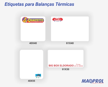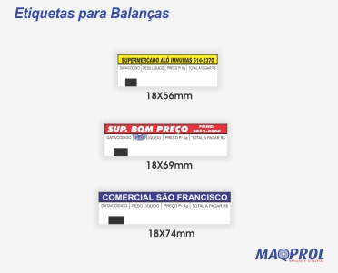 A Maqprol Rótulos e Etiquetas oferece etiquetas térmicas personalizadas para balanças em diversas medidas atendendo as especificações dos principais fabricantes de balanças (filizola, toledo, urano). Além de etiquetas térmicas também oferecemos etiquetas para marcação de preços como motex e open, etiquetas para identificação,rótulos adesivos, etiquetas para frigoríficos ,e também uma linha completa de ribbons e impressoras térmicas.