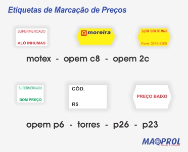 A Maqprol Rótulos e Etiquetas oferece etiquetas térmicas personalizadas para balanças em diversas medidas atendendo as especificações dos principais fabricantes de balanças (filizola, toledo, urano). Além de etiquetas térmicas também oferecemos etiquetas para marcação de preços como motex e open, etiquetas para identificação,rótulos adesivos, etiquetas para frigoríficos ,e também uma linha completa de ribbons e impressoras térmicas.